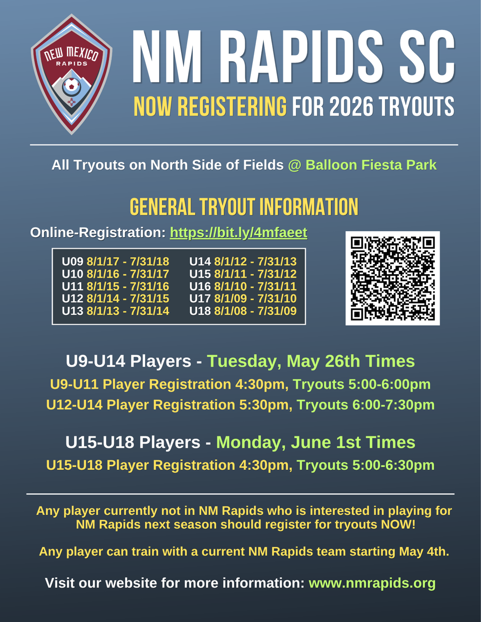 Tryout Information for the 2026-27 Tryouts Online Registration RRSC 2026/27 Boys Teams - Coming Soon RRSC 2026/27 Girls Teams - Coming Soon